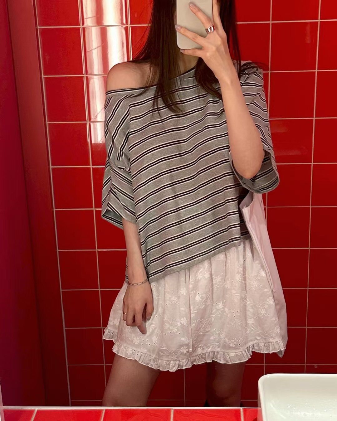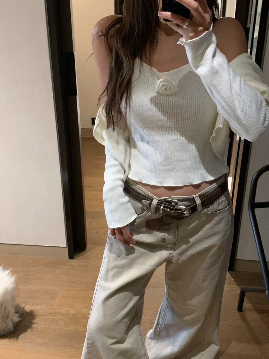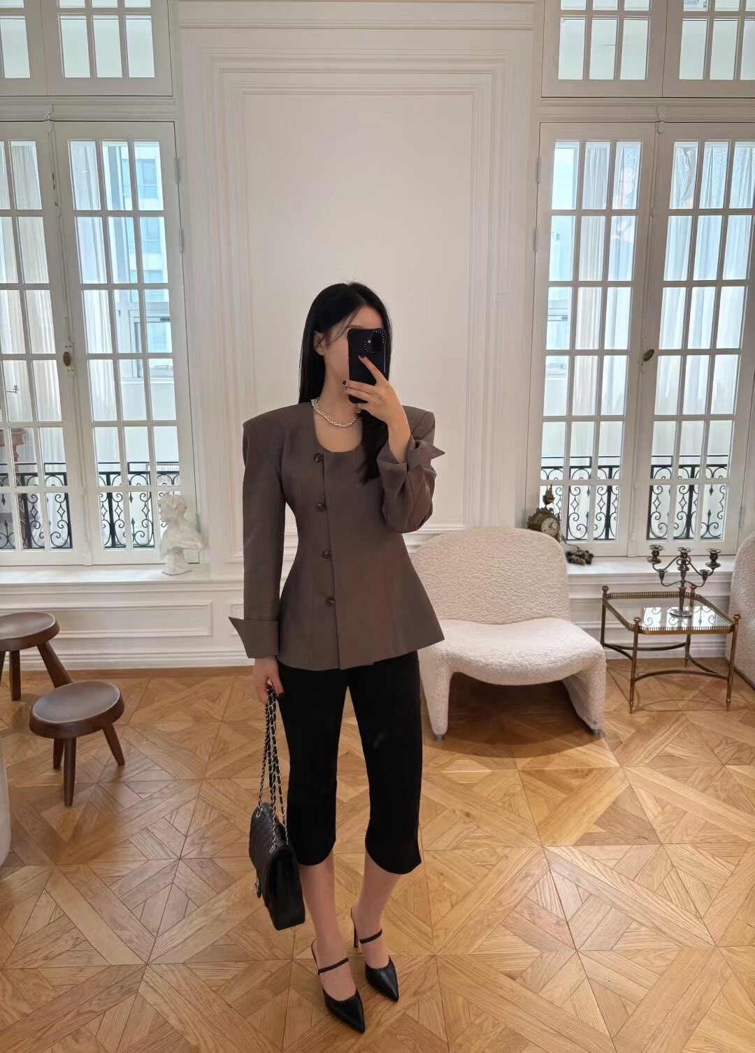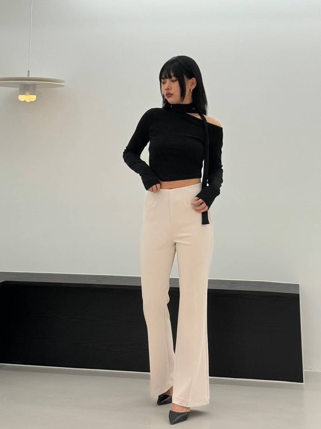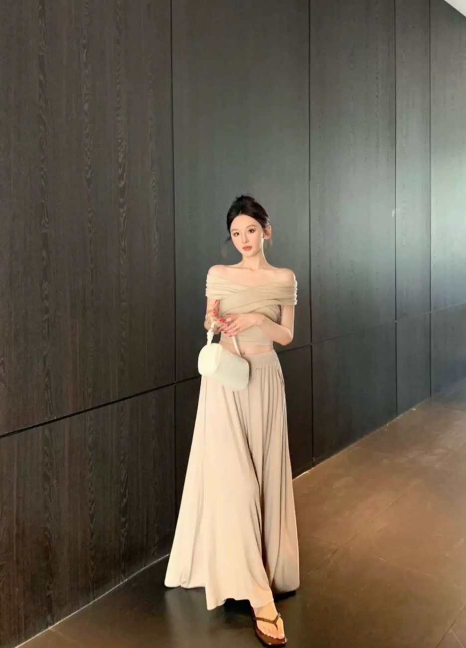 A2507 Graceful 溫柔氣質一字領寬褲套裝