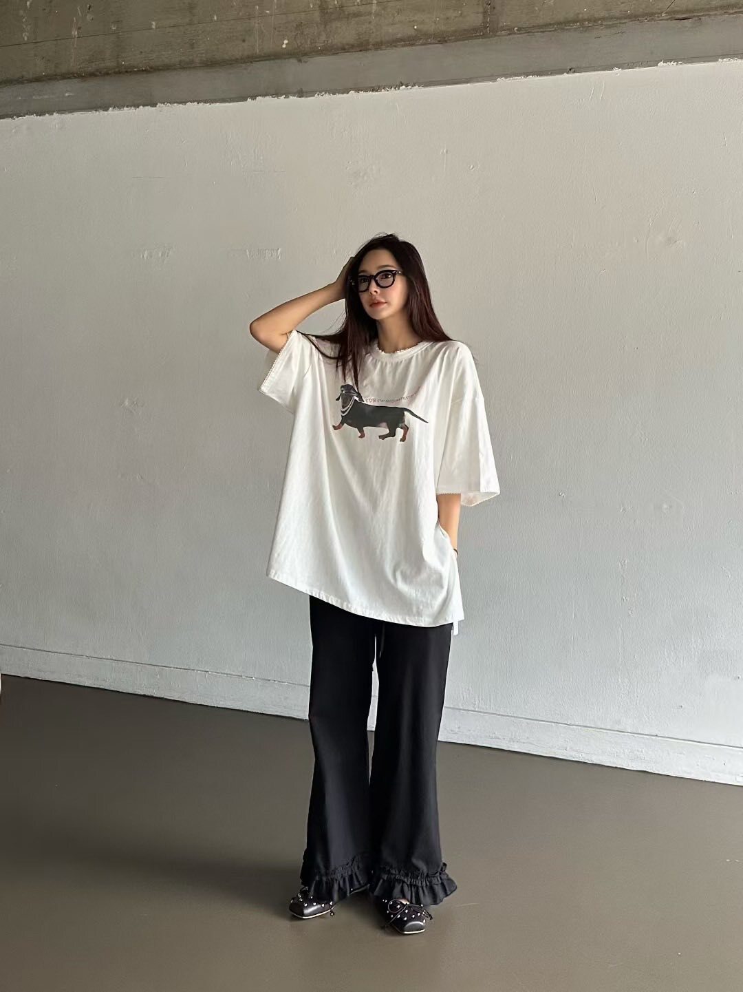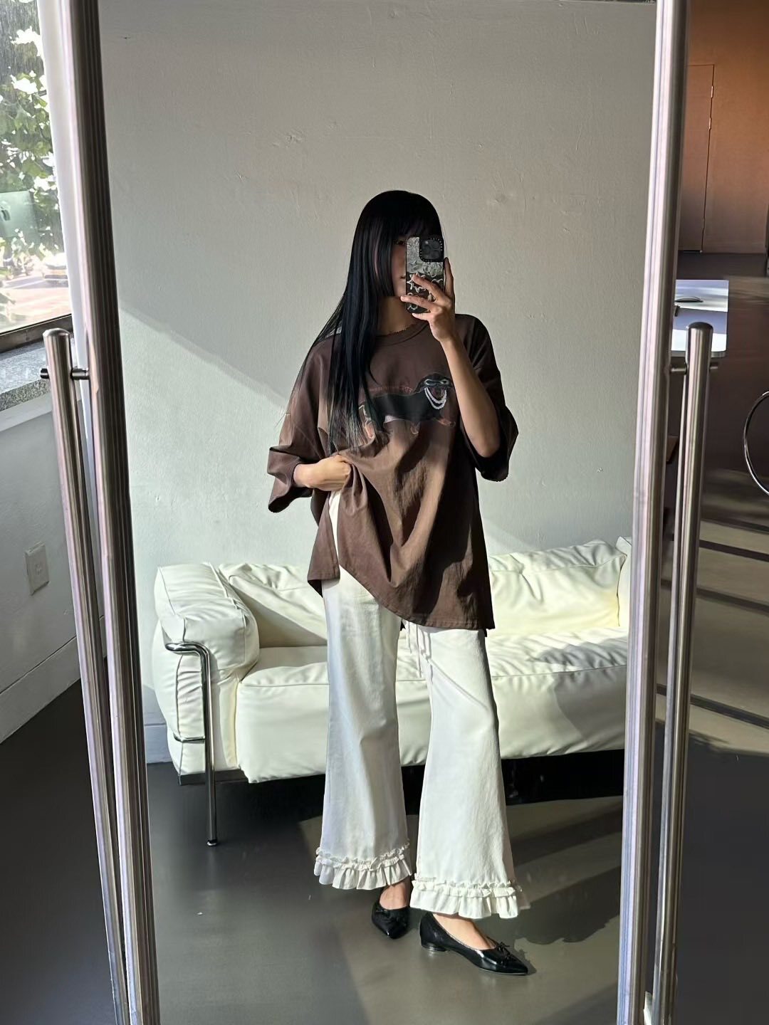 A2586 FluffyFrill俏皮褲腳荷葉寬褲