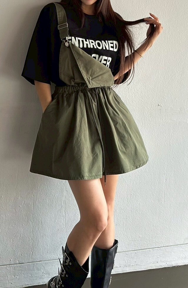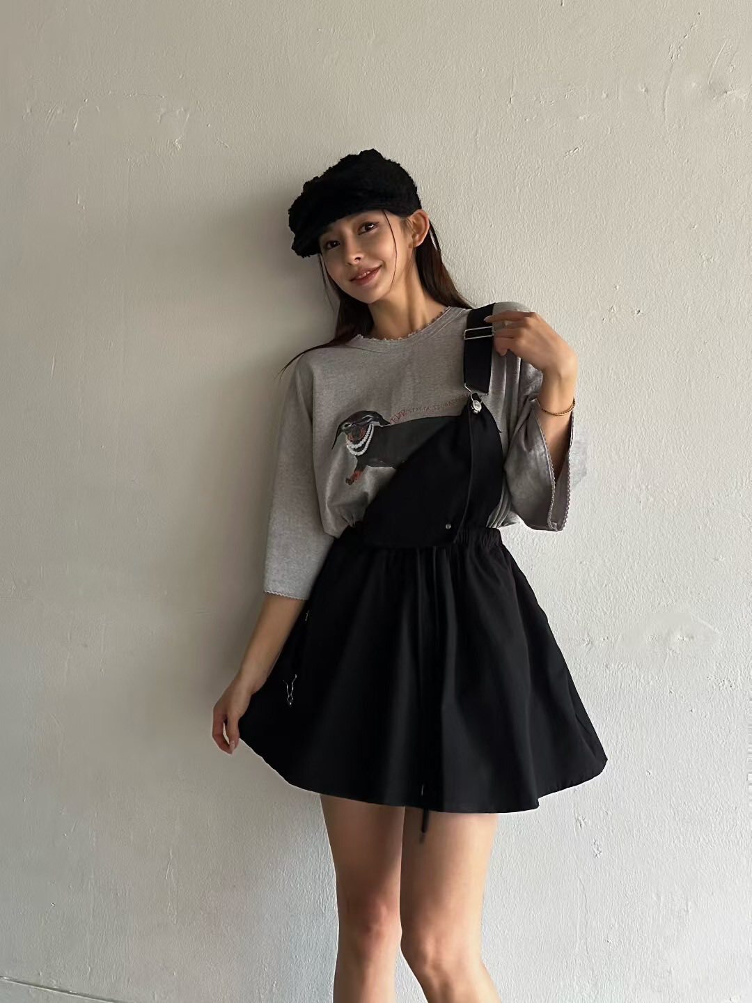 A2588 可愛女孩A字腰抽繩吊帶裙