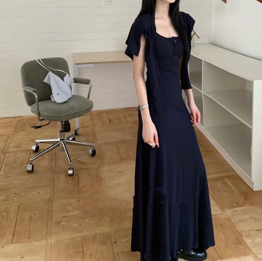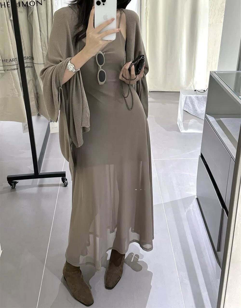 A2516 ElegantLayered優雅層次感高彈柔紗洋裝(外罩+洋裝)