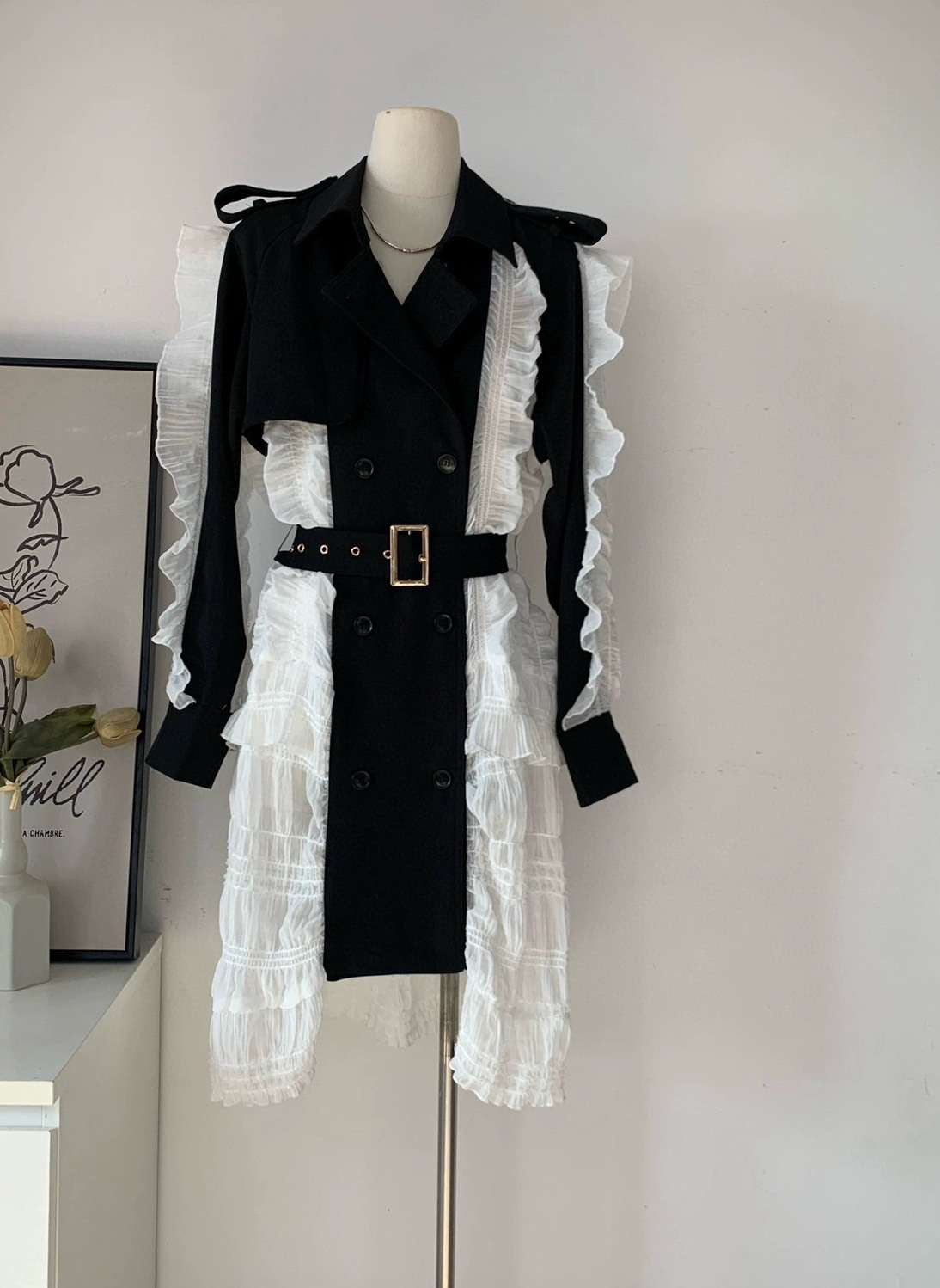A2509 RuffleContrast荷葉拼接風衣洋裝