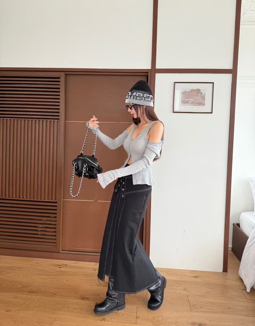 A2597 CargoSkirt設計感附腰包工裝棉裙