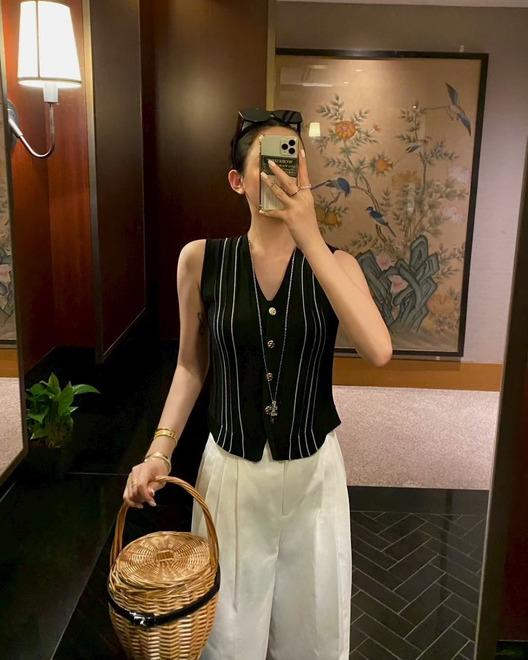 A2515 KnitButton氣質女伶線條金釦針織背心