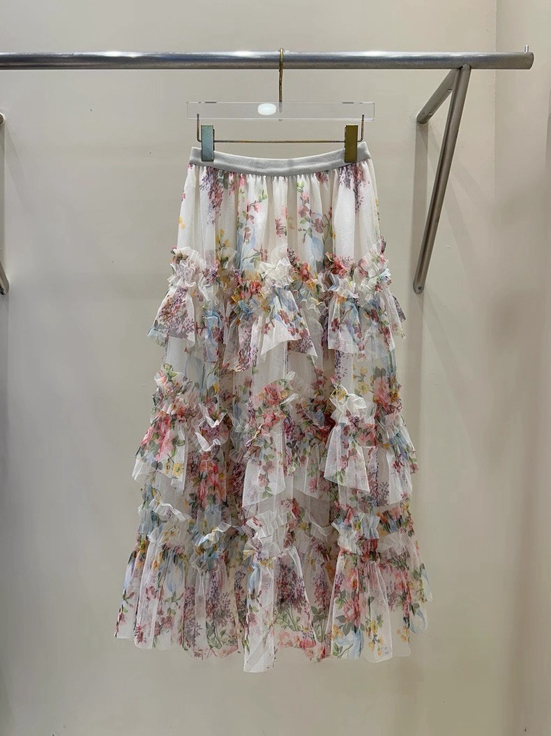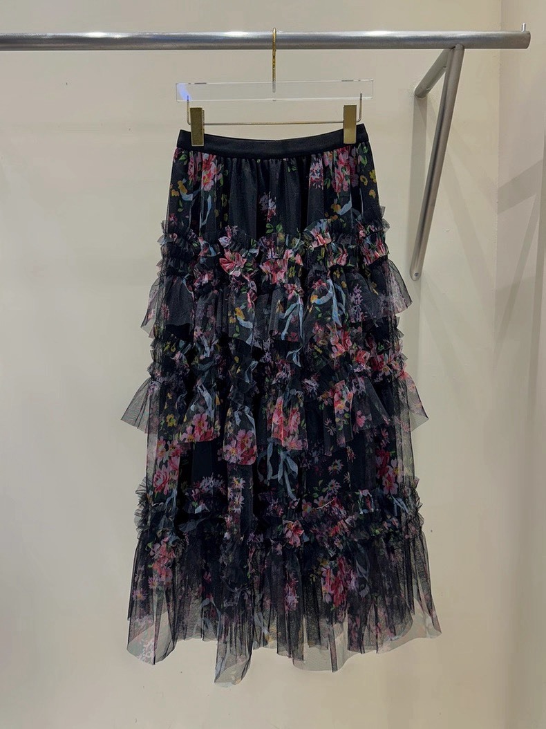 C2521 BloomVeil優雅律動印花荷葉紗裙