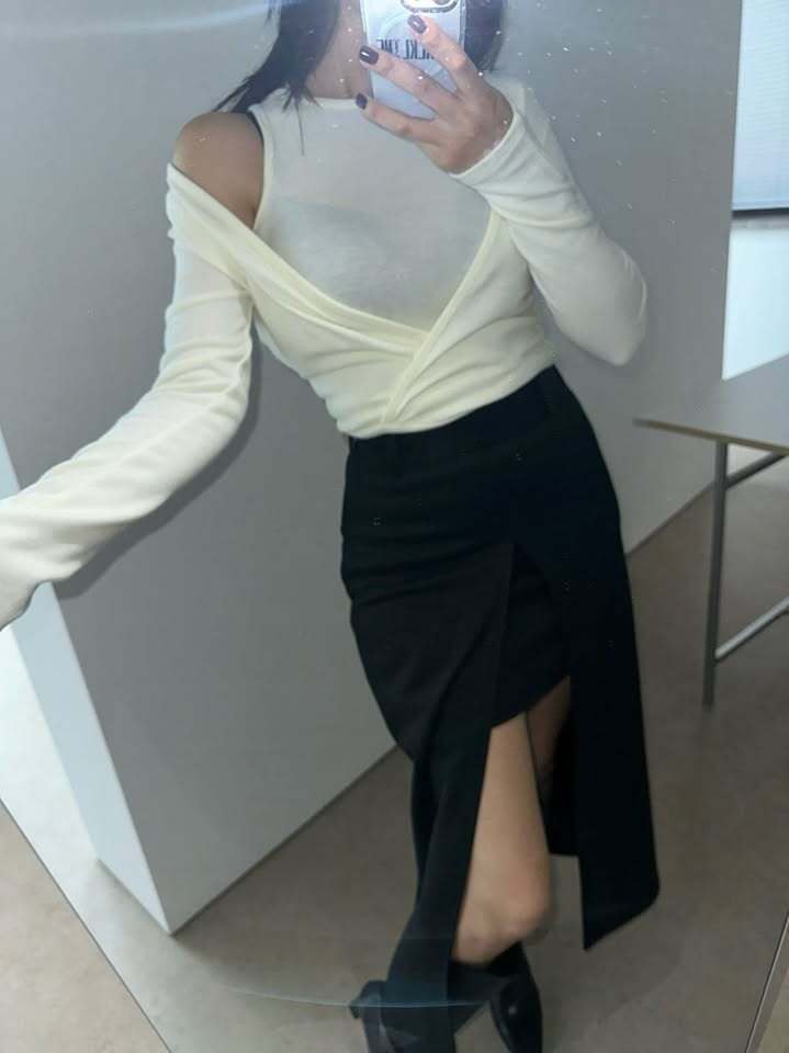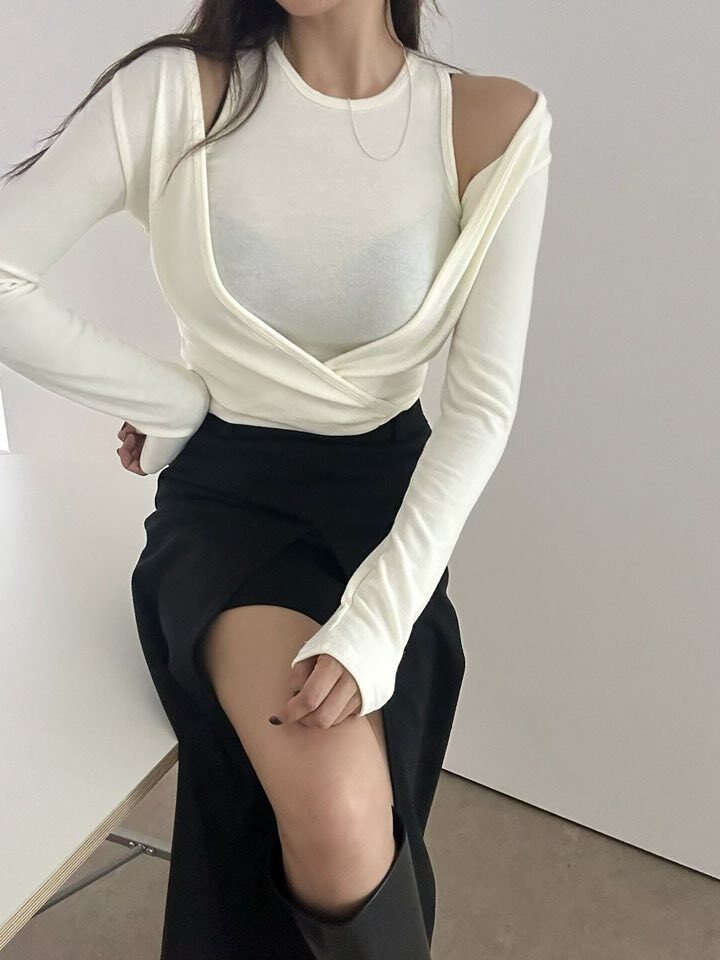 C2522 SereneTwist微露香肩假兩件針織上衣