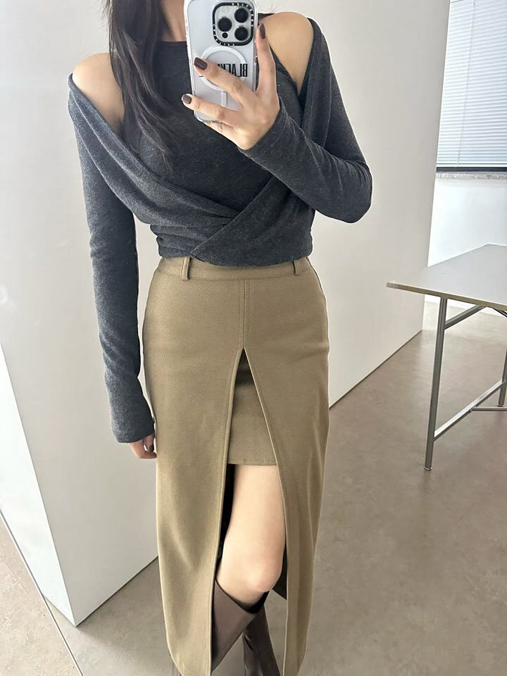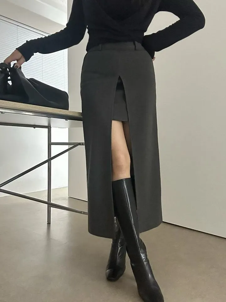 C2523 UrbanMuse高衩挺版開岔褲裙
