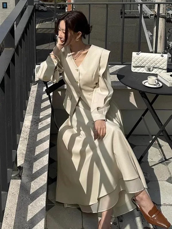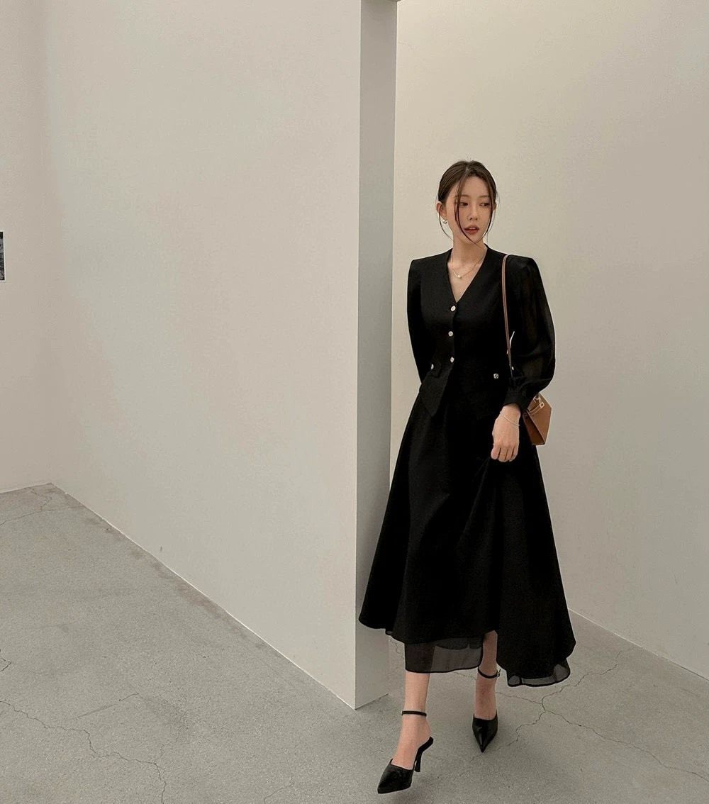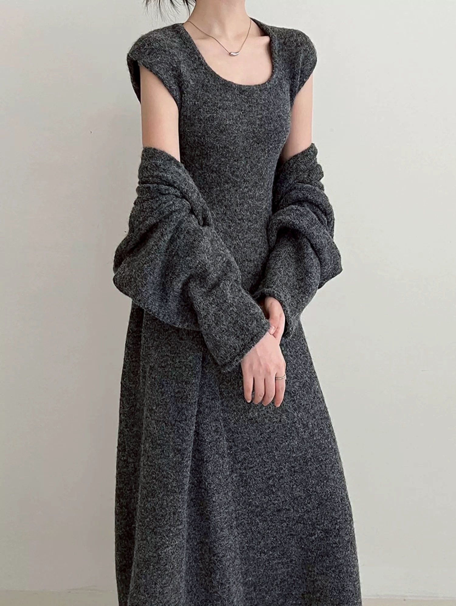C2518 PureMist淡雅氣質兩件式套裝(洋裝+外套)