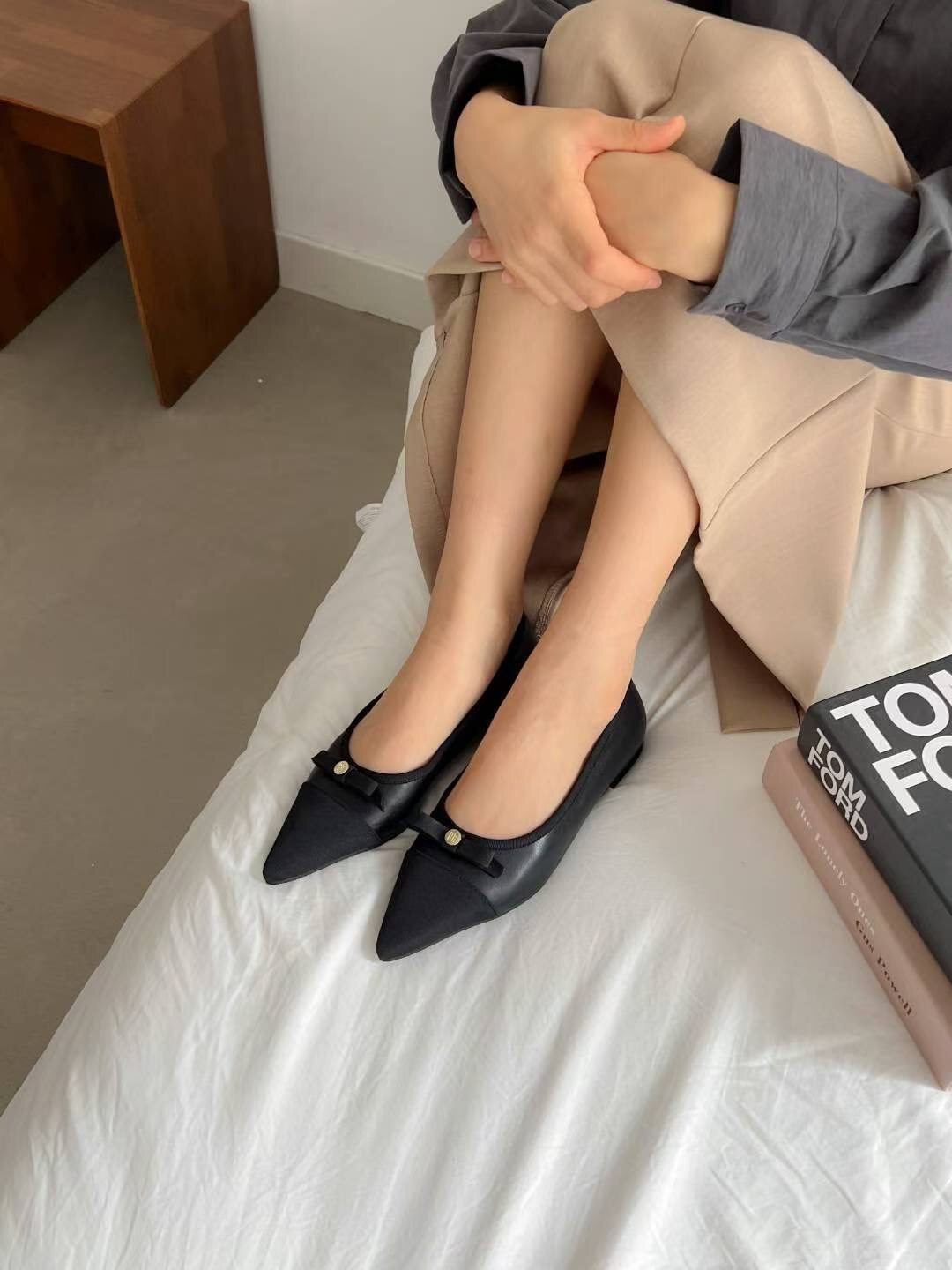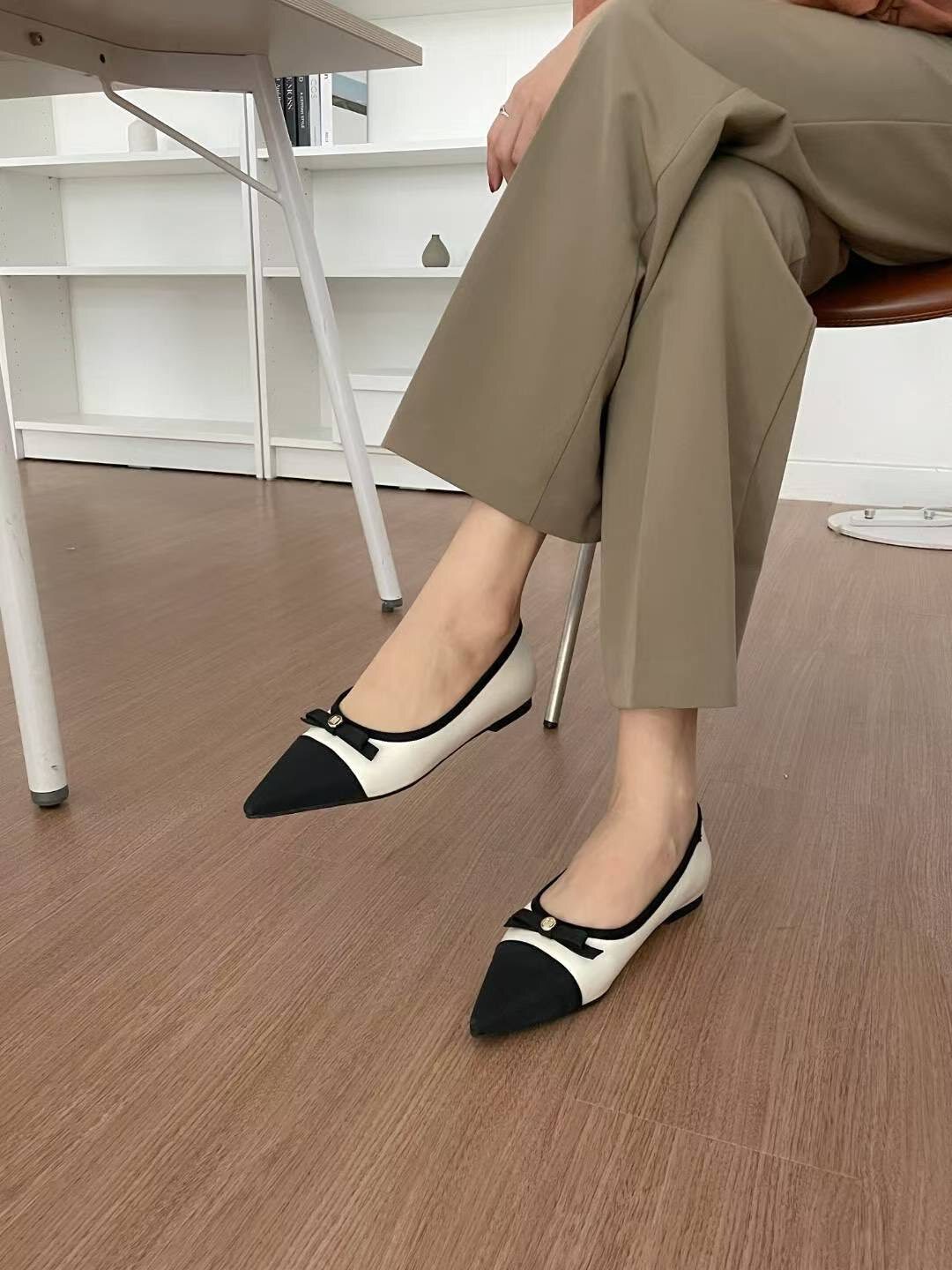 C2520 ChicPearl拼色尖頭珍珠娃娃鞋
