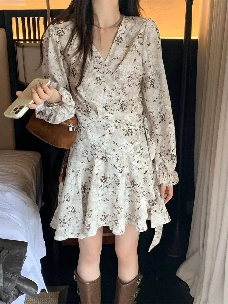 B2501 BlossomMood初秋浪漫花影綁帶洋裝