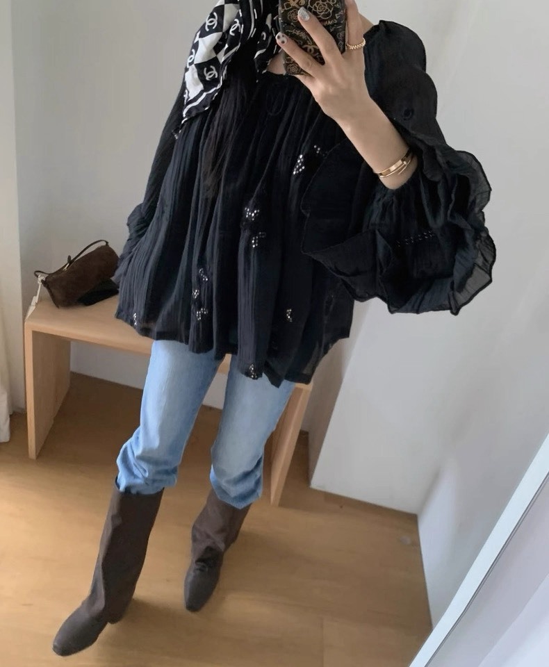 B2502 CloudRuffle雲朵女孩荷葉透膚上衣